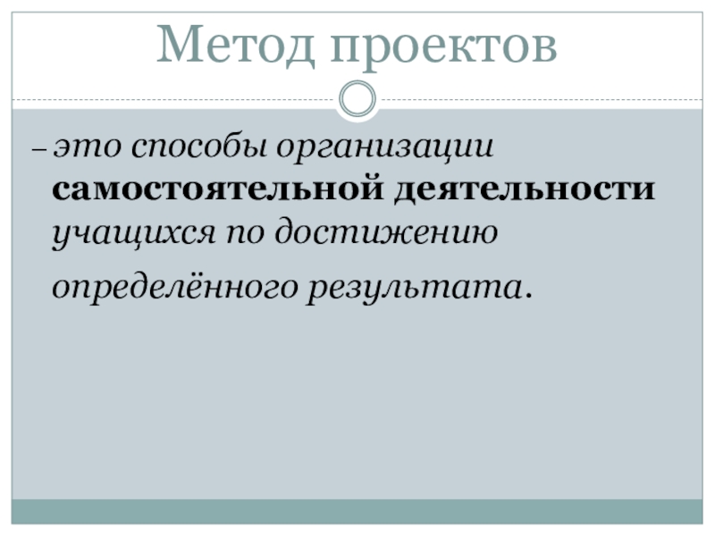 Метод проектов– это способы организации самостоятельной деятельности учащихся по достижению определённого результата.