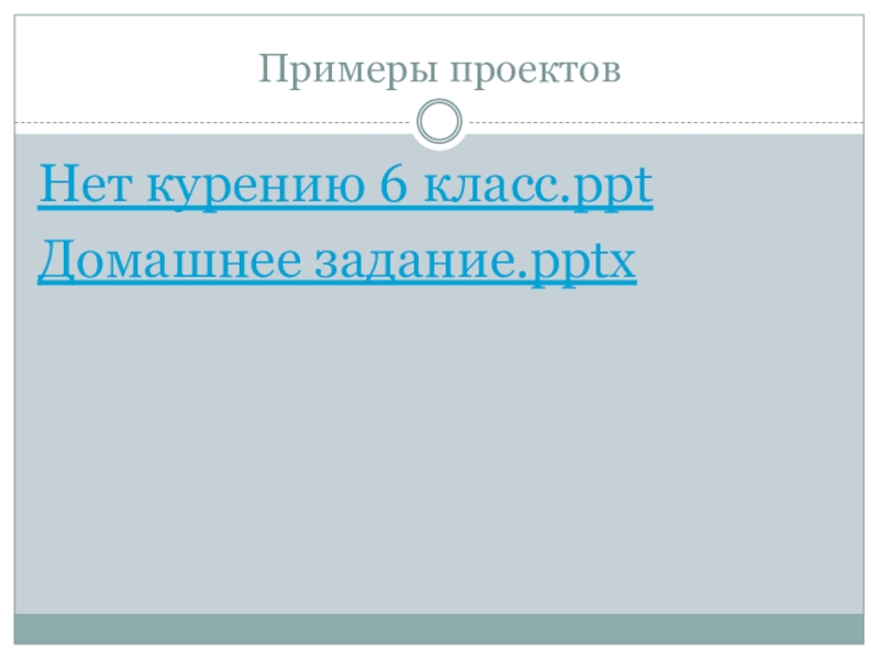 Примеры проектовНет курению 6 класс.pptДомашнее задание.pptx