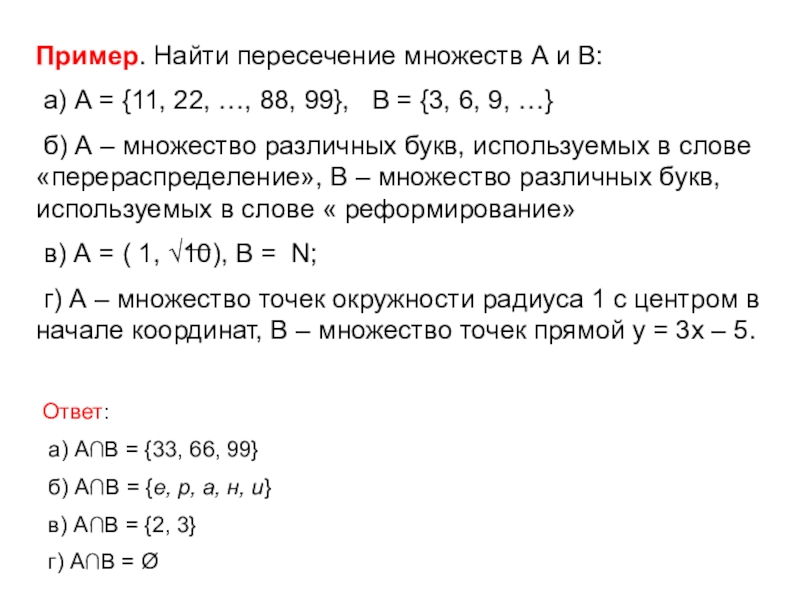 №3. Примеры пустых множеств. Решение: