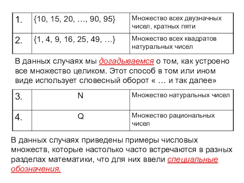В данных случаях приведены примеры числовых множеств, которые настолько часто встречаются в разных разделах математики, что для них ввели специальные обозначения.