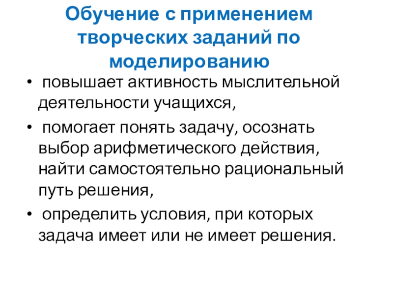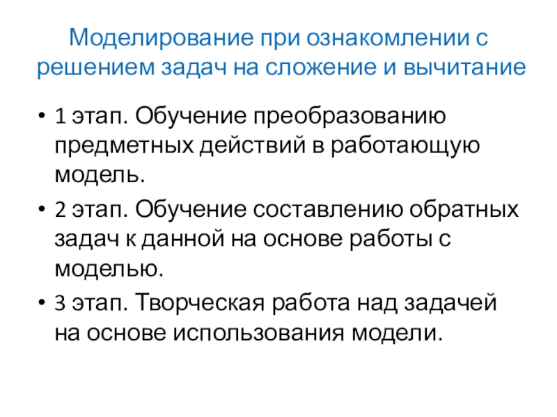Моделирование создаёт большие возможности для организации работы детей по преобразованию задачи из одного вида в другой.