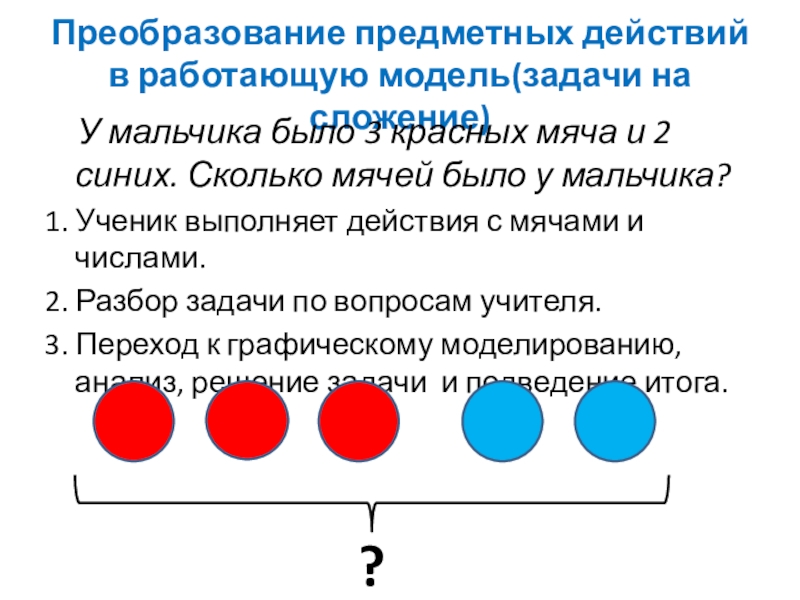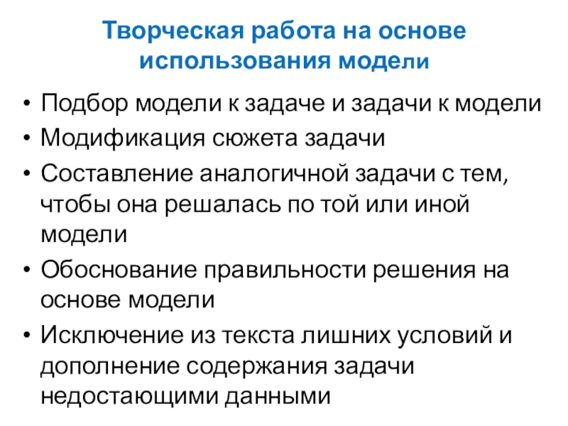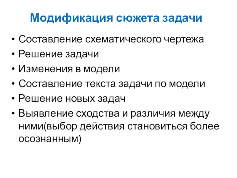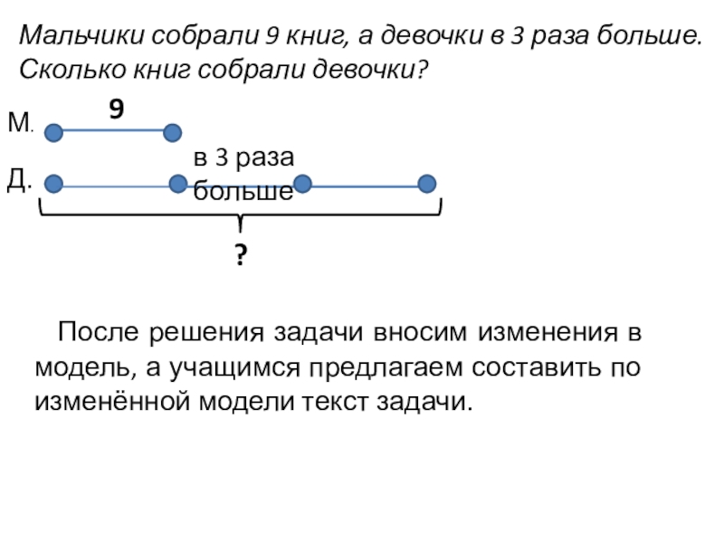 После решения задачи вносим изменения в модель, а учащимся предлагаем составить по изменённой модели текст задачи.