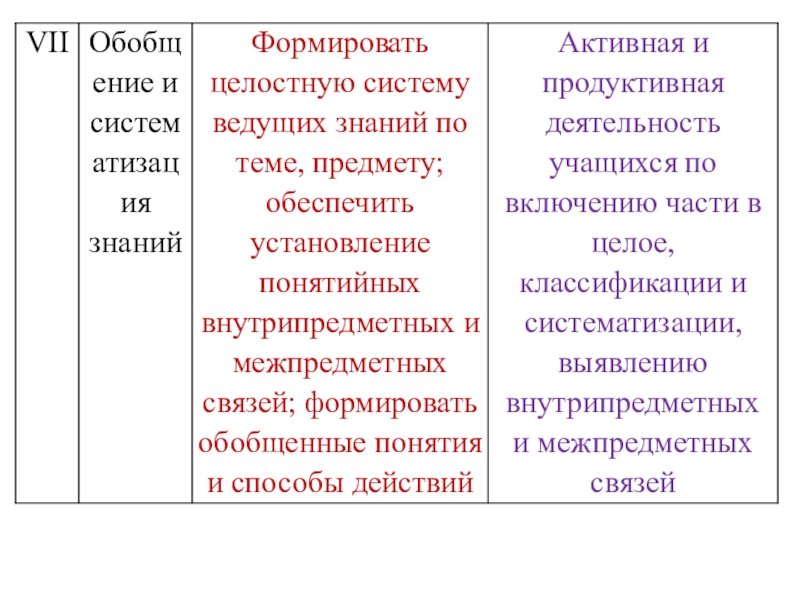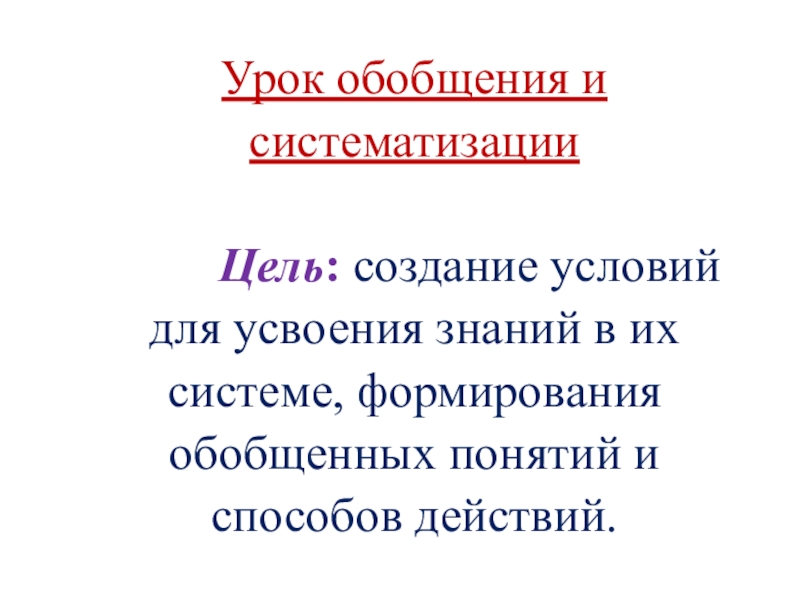 для усвоения знаний в их системе, формирования обобщенных понятий и способов действий.