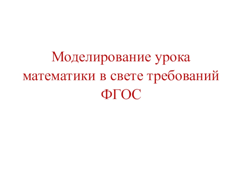 Слайд 2Моделирование урока математики в свете требований ФГОС