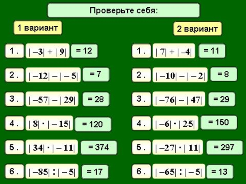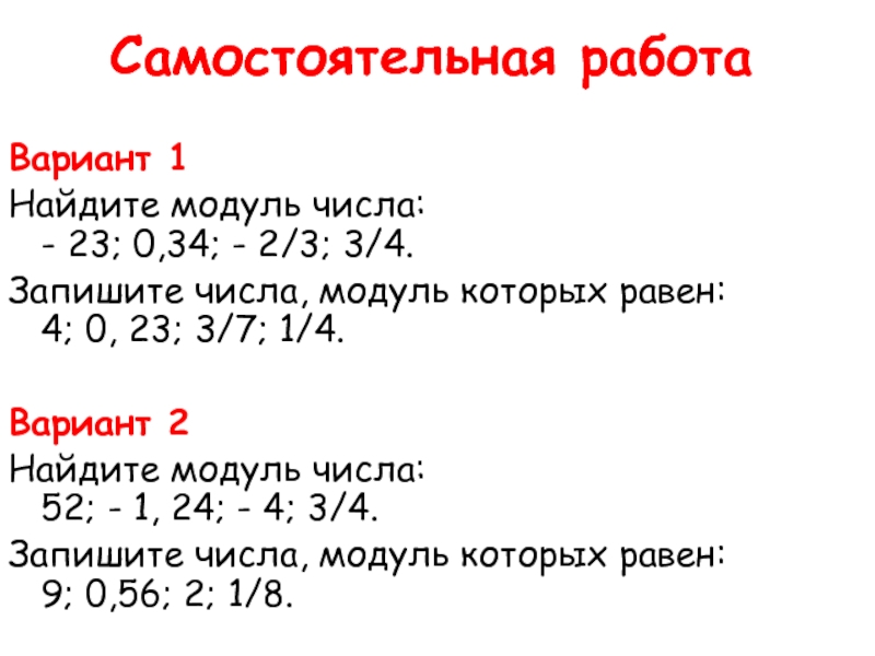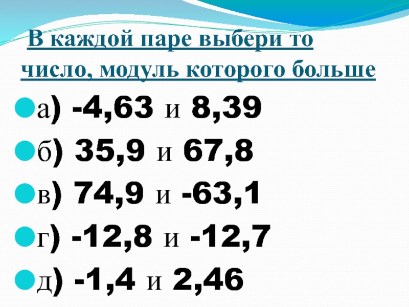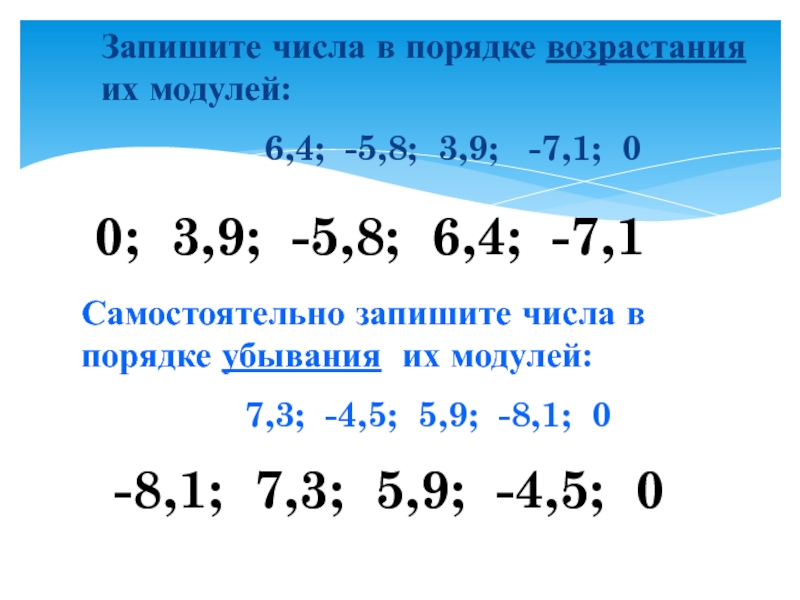 Самостоятельно запишите числа в порядке убывания их модулей: