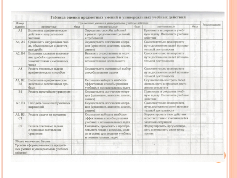 Диагностика уровней сформированности предметных умений и УУД