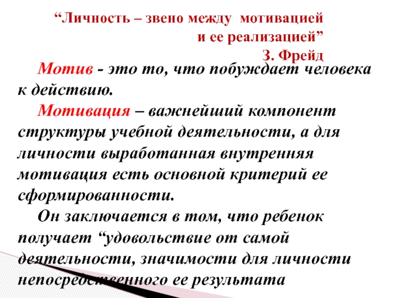 “Личность – звено между мотивацией