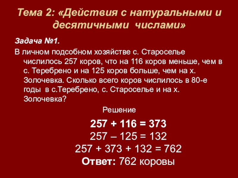 Слайд 16Тема 2: «Действия с натуральными и десятичными числами»