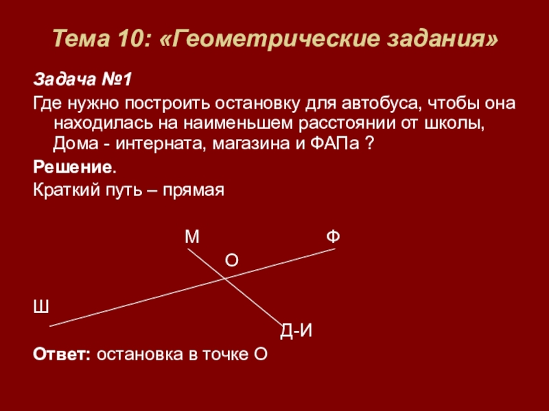 она находилась на наименьшем расстоянии от школы, Дома - интерната, магазина и ФАПа ?