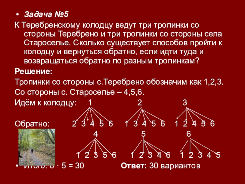 три тропинки со стороны села Староселье. Сколько существует способов пройти к колодцу и вернуться обратно, если идти туда и возвращаться обратно по разным тропинкам?