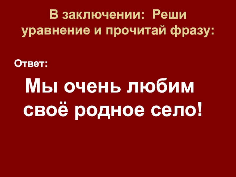 Слайд 63В заключении: Реши уравнение и прочитай фразу: