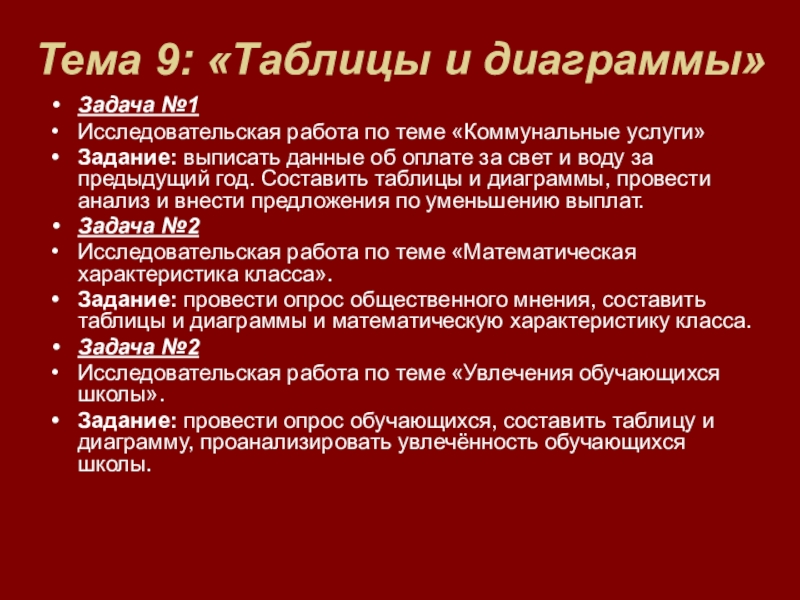Слайд 58Тема 9: «Таблицы и диаграммы»