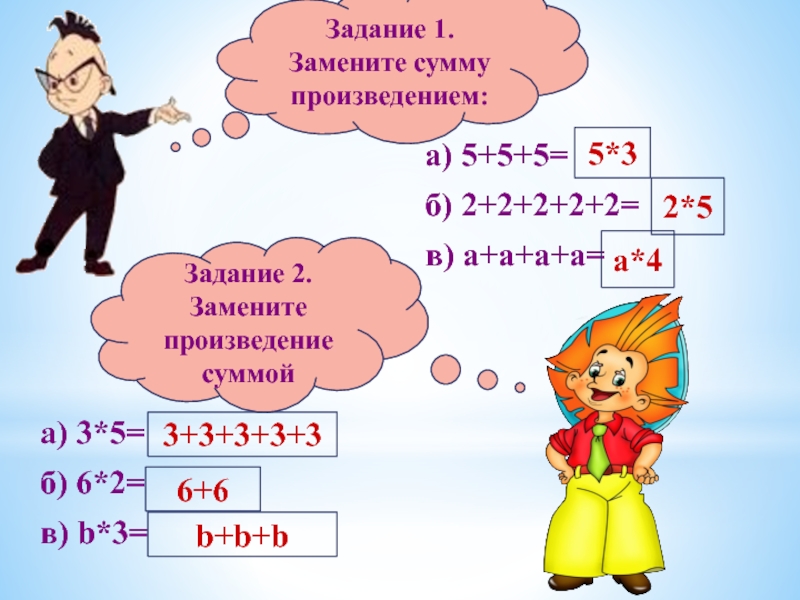 Ответ: Заменить произведение суммой одинаковых слагаемых