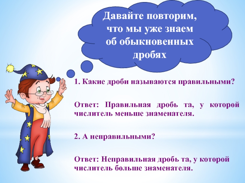 Давайте повторим, что мы уже знаем об обыкновенных дробях