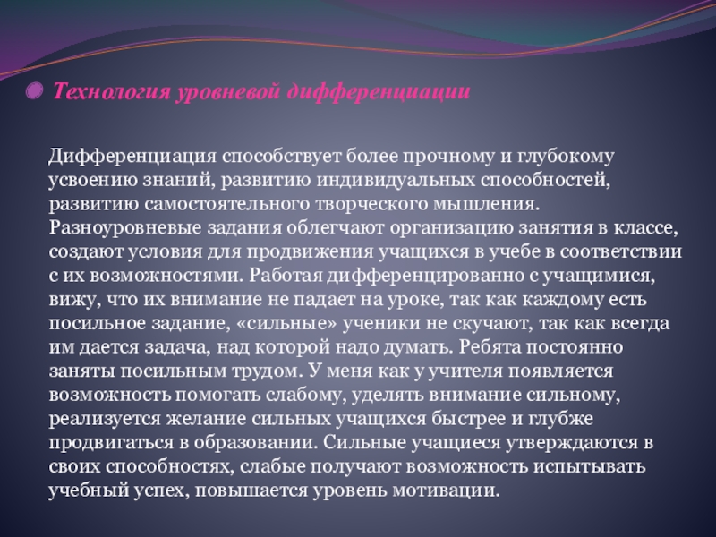 Дифференциация способствует более прочному и глубокому усвоению знаний, развитию