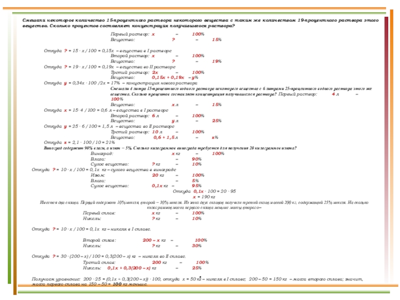 Откуда ? = 19 · х /100 = 0,19х – вещества во II растворе