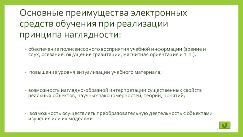 Слайд 5Основные преимущества электронных средств обучения при реализации принципа наглядности: