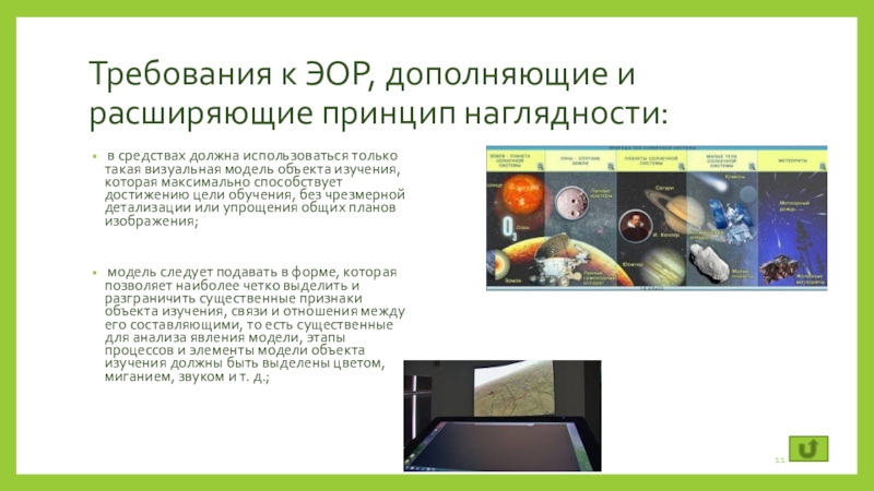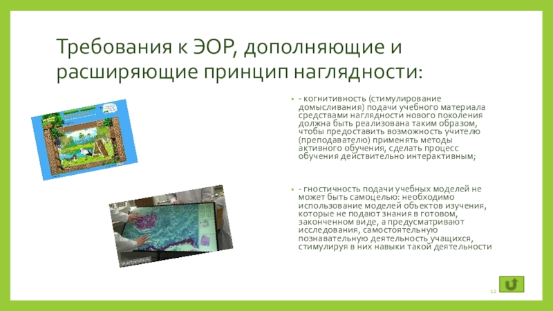 Требования к ЭОР, дополняющие и расширяющие принцип наглядности: