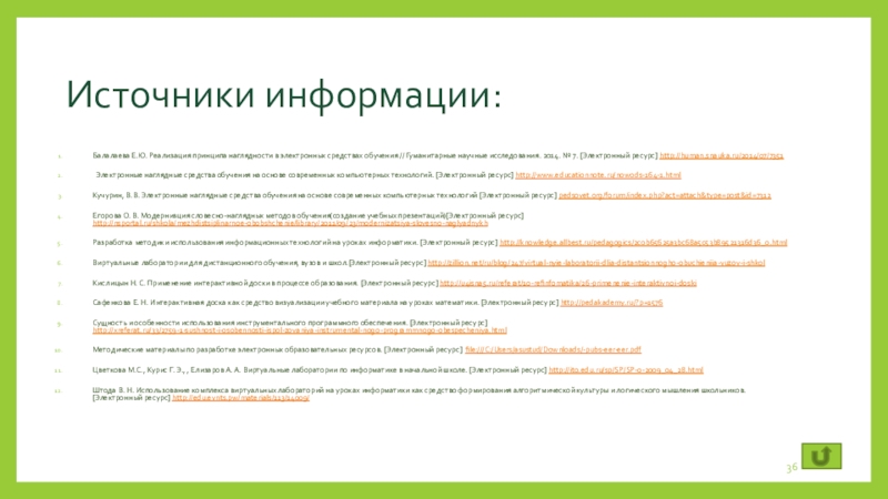 Егорова О. В. Модернизция словесно-наглядных методов обучения(создание учебных презентаций)[Электронный ресурс] http://nsportal.ru/shkola/mezhdistsiplinarnoe-obobshchenie/library/2011/09/23/modernizatsiya-slovesno-naglyadnykh