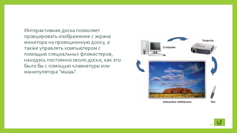 Слайд 18Интерактивная доска позволяет проецировать изображение с экрана монитора на проекционную доску,