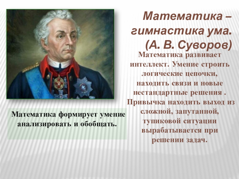 Математика формирует умение анализировать и обобщать.