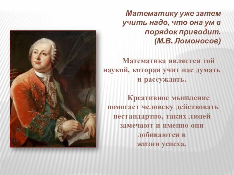 Математика является той наукой, которая учит нас думать и рассуждать.