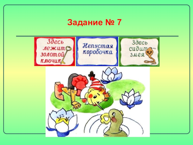 Задание № 5 Топкое болотоПоследуйте за Буратино по математическим кочкам. Не торопитесь при выполнении вычислений, а то