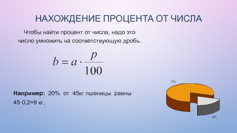 Например: 20% от 45кг пшеницы равны 45·0,2=9 кг.