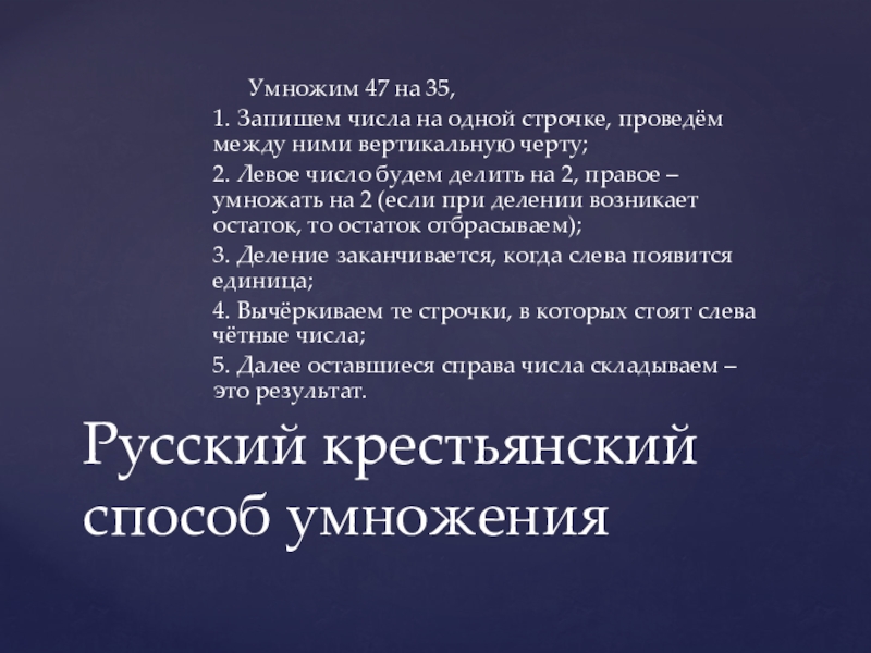 Русский крестьянский способ умножения