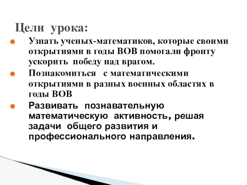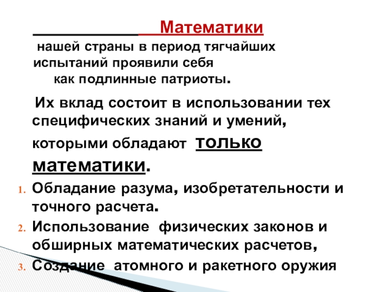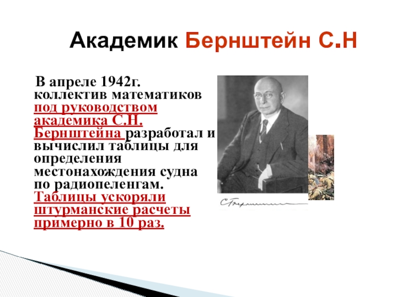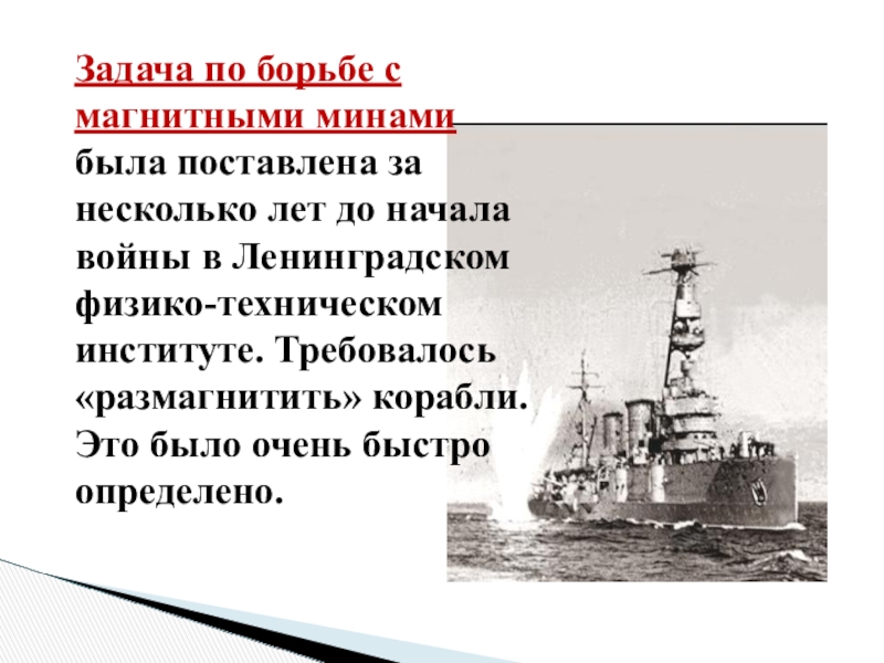 Труды одного из ведущих ученых математиков А.П.Александрова позволили разработать методы размагничивания боевых кораблей. Все боевые корабли подвергались в портах «антимагнитной» обработке. Тем самым были спасены многие тысячи жизней наших военных моряков.