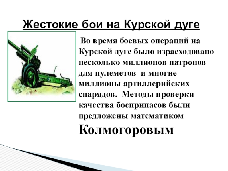Во время боевых операций на Курской дуге было израсходовано несколько миллионов патронов для пулеметов и многие миллионы артиллерийских снарядов. Методы проверки качества боеприпасов были предложены математиком
