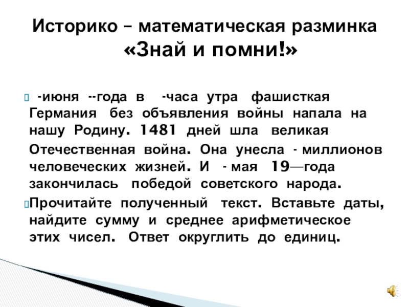 Историко – математическая разминка