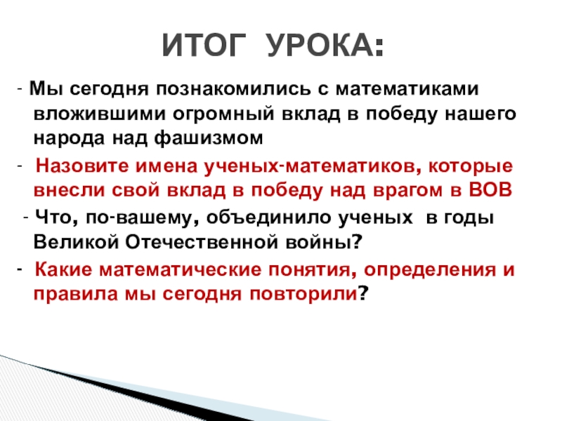 ИТОГ УРОКА: