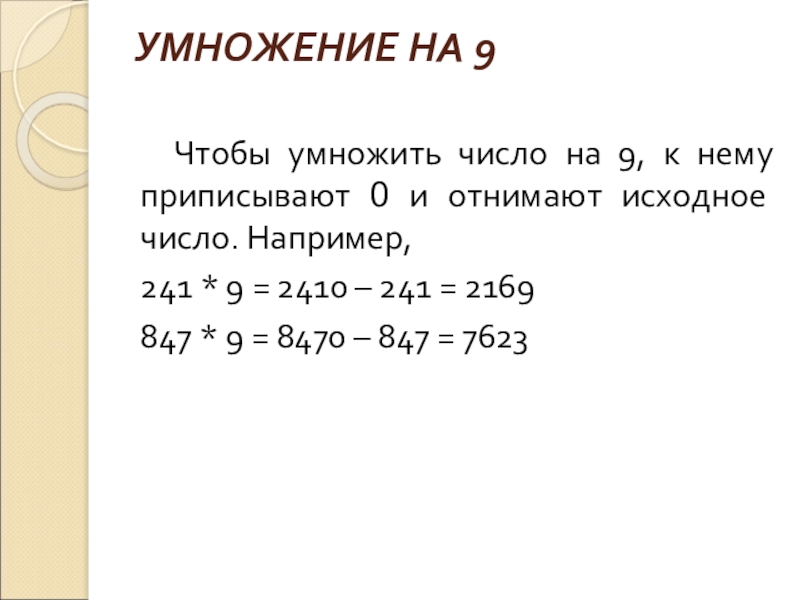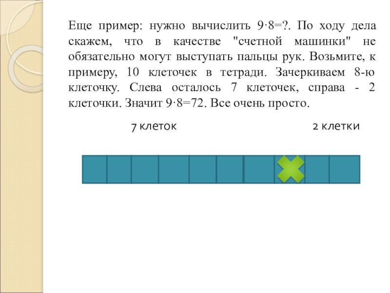 Слайд 10Еще пример: нужно вычислить 9·8=?. По ходу дела скажем, что в