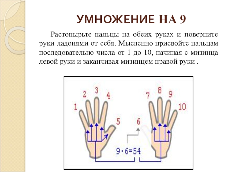 Слайд 8УМНОЖЕНИЕ НА ПАЛЬЦАХ