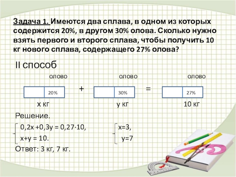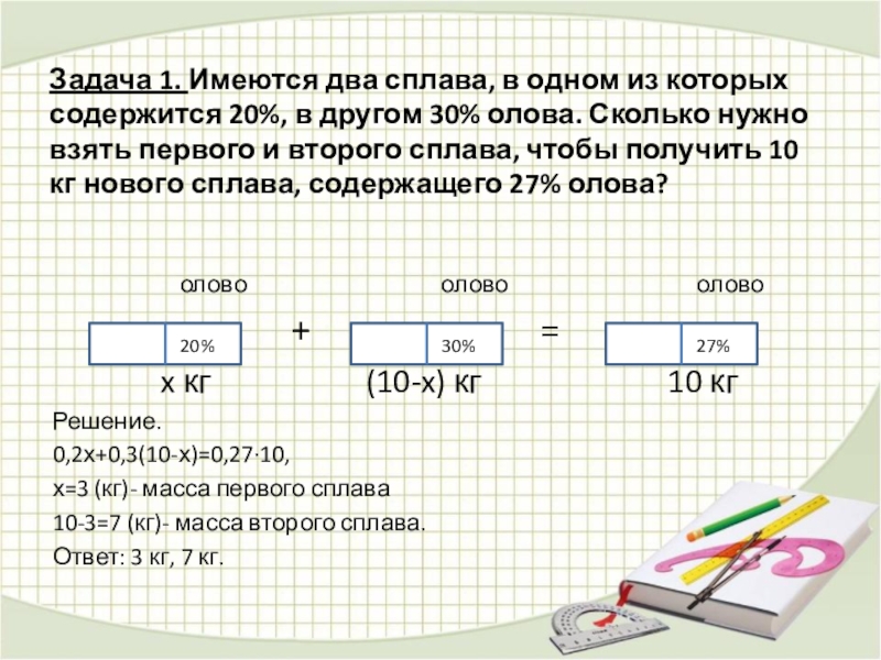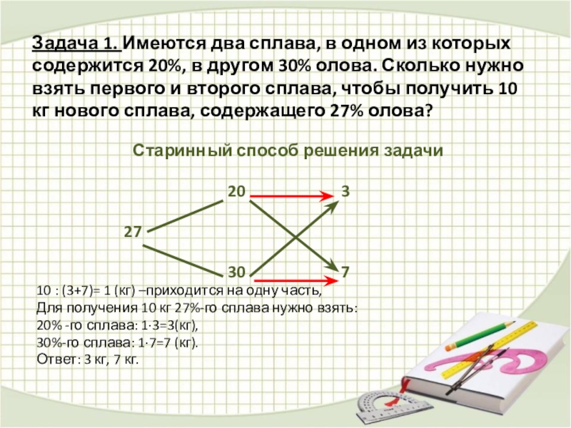 10 : (3+7)= 1 (кг) –приходится на одну часть,