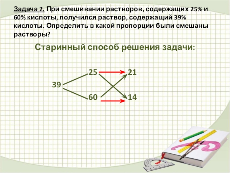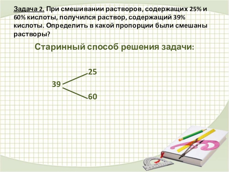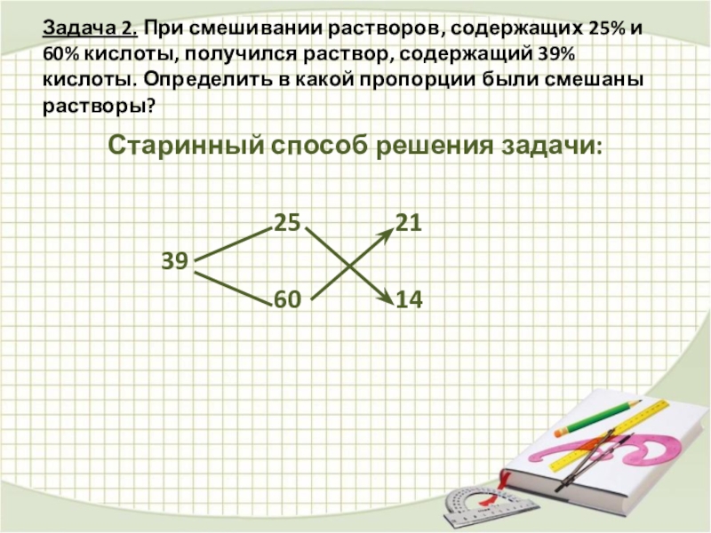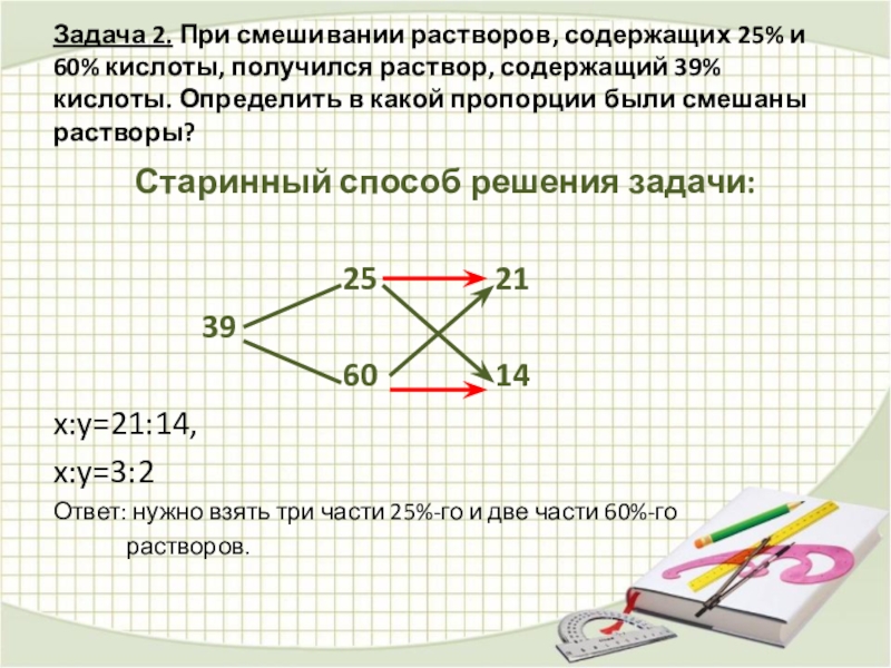 Ответ: нужно взять три части 25%-го и две части 60%-го