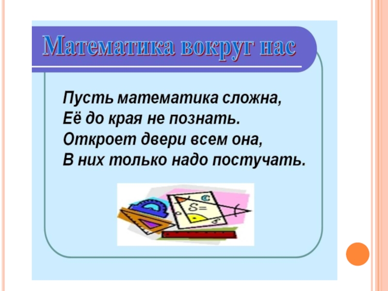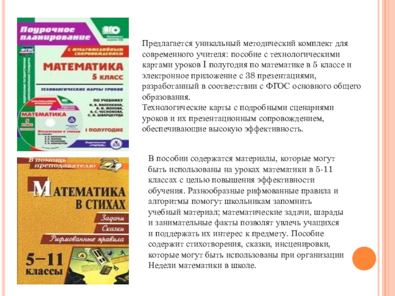 В пособии содержатся материалы, которые могут быть использованы на уроках математики в 5-11 классах с целью повышения эффективности обучения. Разнообразные рифмованные правила и алгоритмы помогут школьникам запомнить учебный материал; математические задачи, шарады и занимательные факты позволят увлечь учащихся и поддержать их интерес к предмету. Пособие содержит стихотворения, сказки, инсценировки, которые могут быть использованы при организации Недели математики в школе.