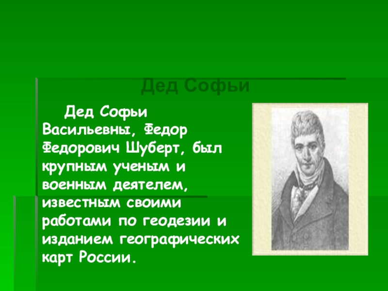 Дед Софьи Васильевны, Федор Федорович Шуберт, был
