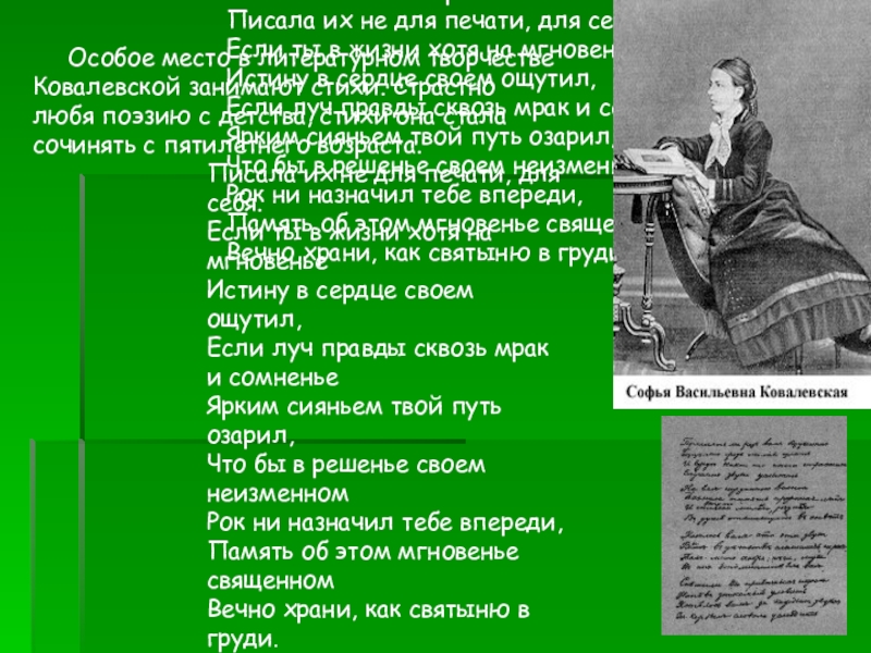 Слайд 22 Особое место в литературном творчестве Ковалевской занимают стихи.