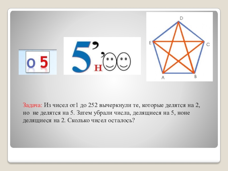 Слайд 18Задача: Из чисел от1 до 252 вычеркнули те, которые делятся на
