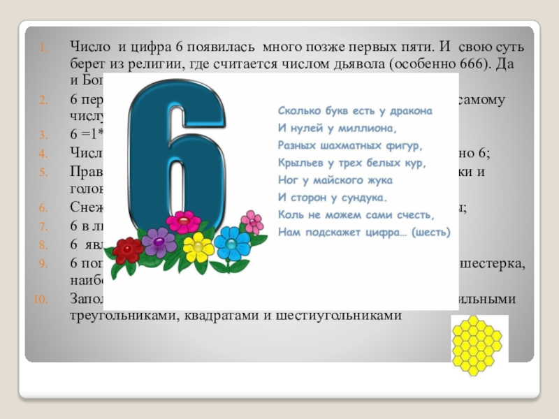 Слайд 19Число и цифра 6 появилась много позже первых пяти. И свою