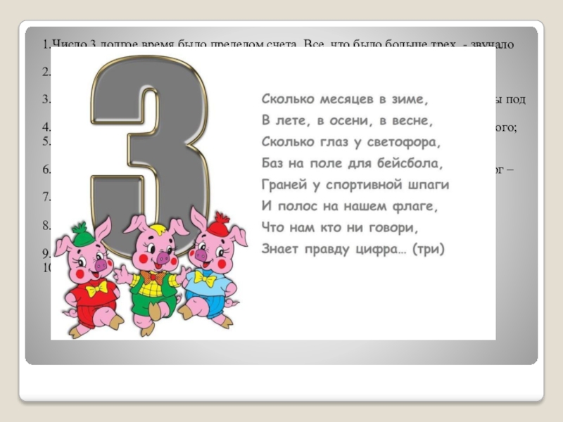Слайд 121.Число 3 долгое время было пределом счета. Все, что было больше