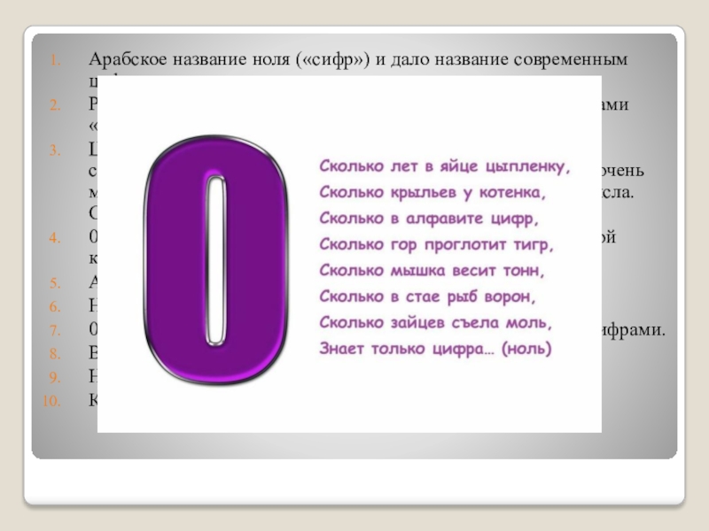 Слайд 4Арабское название ноля («сифр») и дало название современным цифрам.