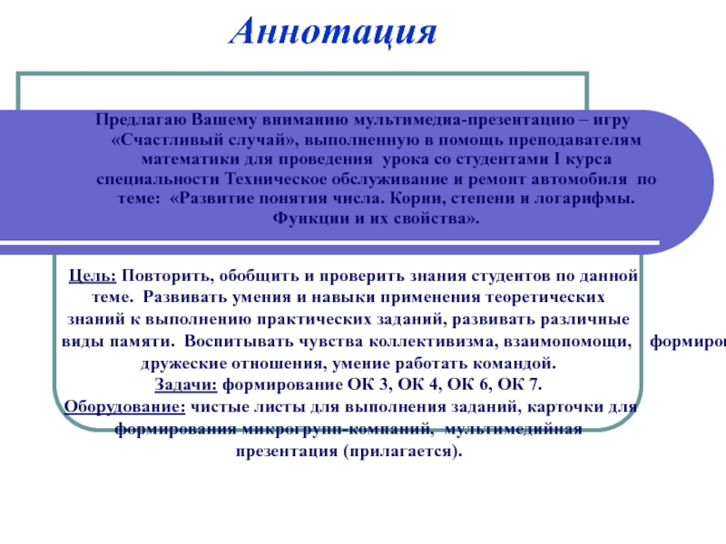 Задачи: формирование ОК 3, ОК 4, ОК 6, ОК 7.