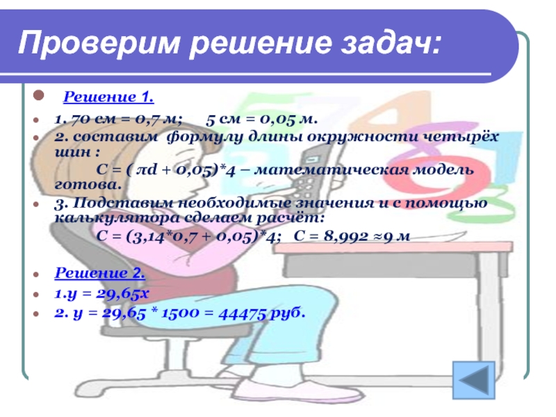 Задача 1. Найдите длину заготовки четырёх шин, которые необходимо натянуть на колёса диаметром 70 см, учитывая, что на сварку концов одной шины необходимо добавить 5 см.