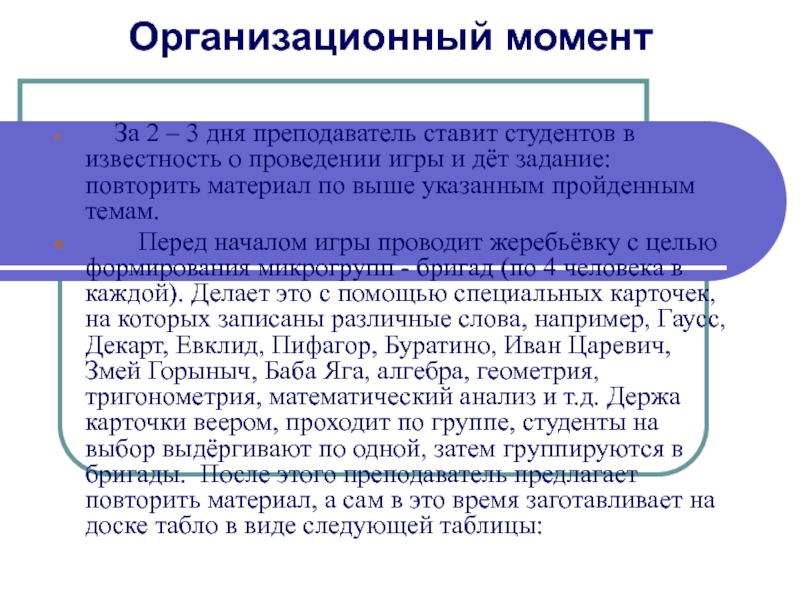 Оборудование: чистые листы для выполнения заданий, карточки для формирования микрогрупп-компаний, мультимедийная презентация (прилагается).