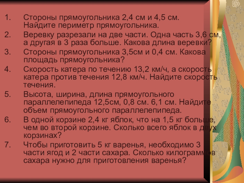 Слайд 31Стороны прямоугольника 2,4 см и 4,5 см. Найдите периметр прямоугольника.