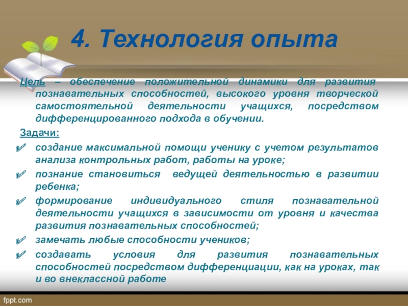 Цель – обеспечение положительной динамики для развития познавательных способностей,