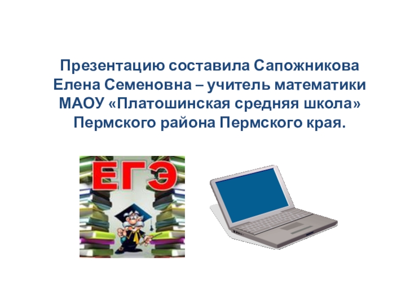 Презентацию составила Сапожникова Елена Семеновна – учитель математики МАОУ «Платошинская средняя школа» Пермского района Пермского